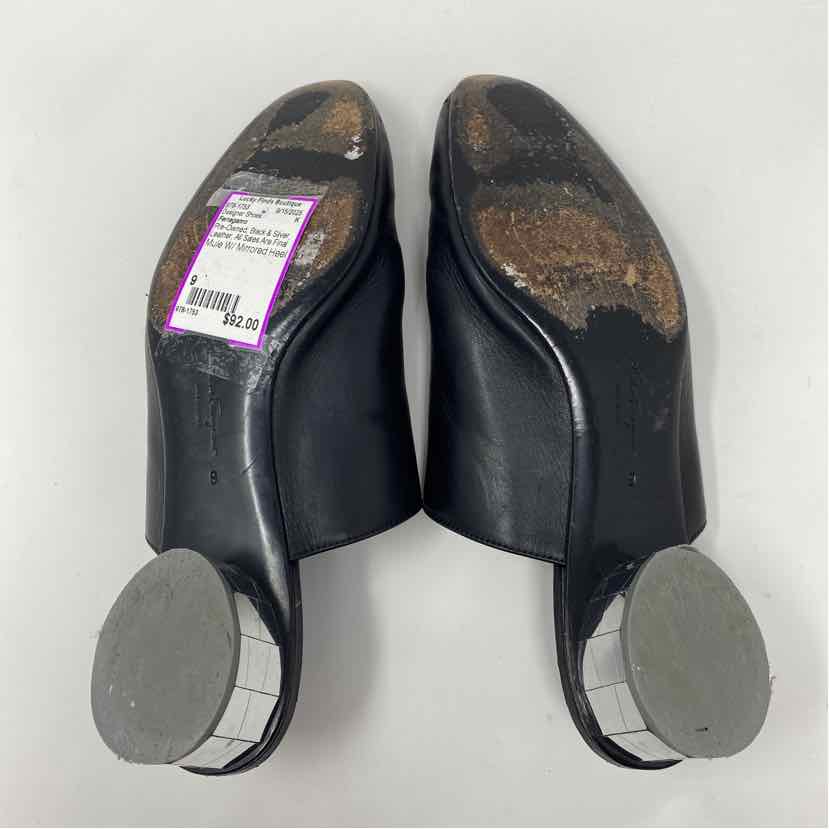 Pre-Owned Ferragamo Black & Silver Leather Shoe Size 9 Designer Shoes
